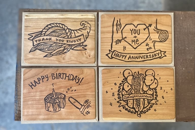 Whether the occasion be a birthday, an anniversary, a graduation, or a gift received, we guarantee the purchase of this heartfelt 4-pack means you’ll always be ready to frisbee the appropriate handmade wooden card to the rightful recipient in moments.